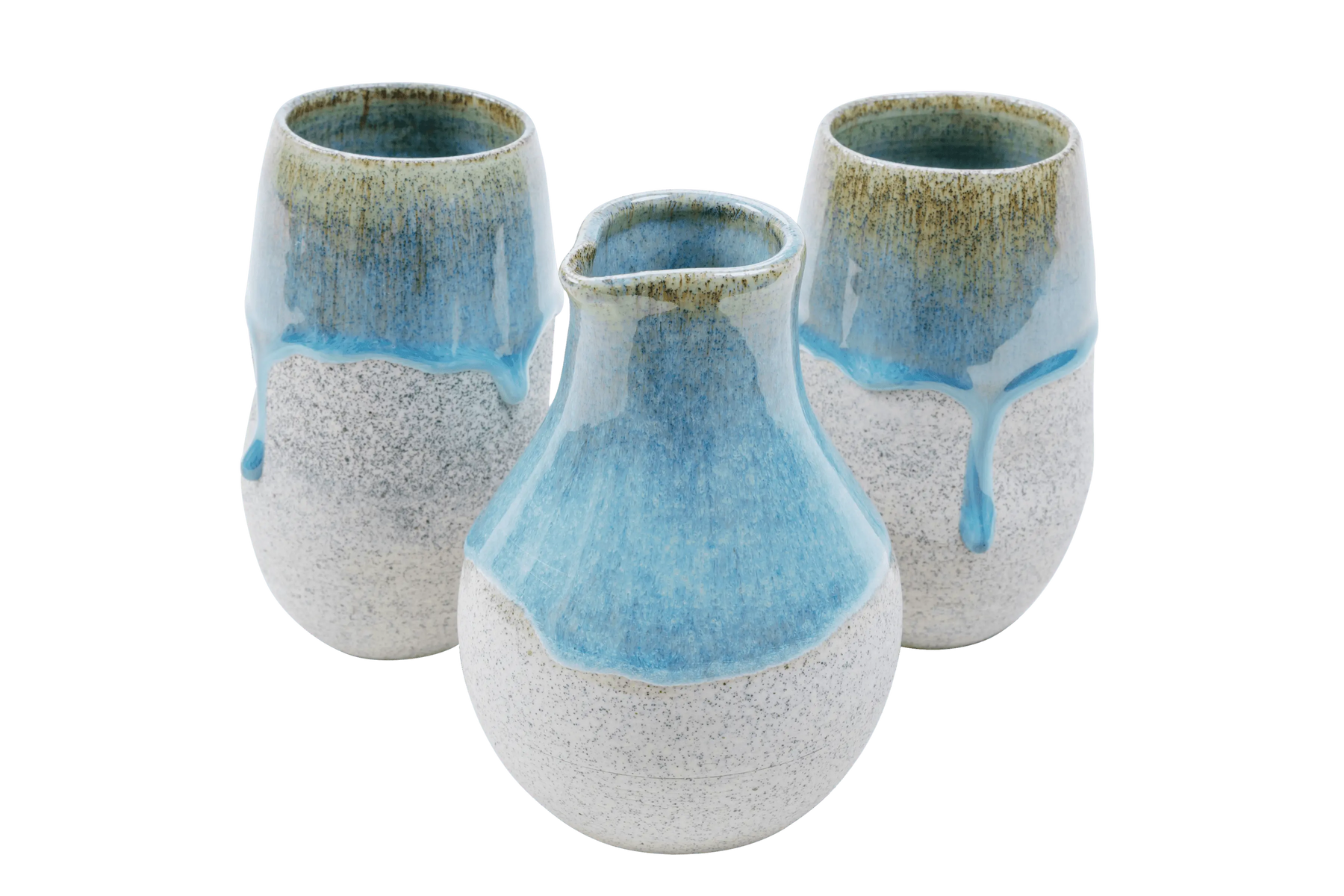Blue Series Dragonfruit Ceramic Decanter & Goblets Set - Artisan-Crafted Excellence